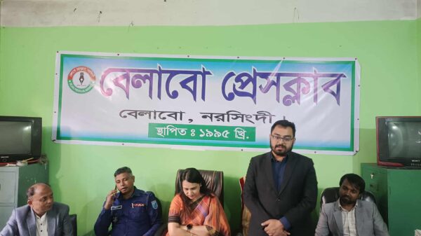 মোঃ বাদল মিয়া, বেলাব (নরসিংদী) প্রতিনিধি : ত্রয়োদশ জাতীয় সংসদ নির্বাচন অবাধ, সুষ্ঠু ও নিরপেক্ষভাবে সম্পন্ন করায় বেলাব উপজেলা প্রশাসনকে অভিনন্দন জানিয়েছে বেলাব প্রেসক্লাব। বুধবার (১৮ ফেব্রুয়ারি) বিকেলে বেলাব