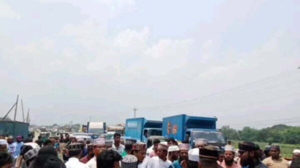 মহাসড়ক অবরোধ করে মাওলানা রইস উদ্দিন হত্যার  প্রতিবাদে বিক্ষোভ
