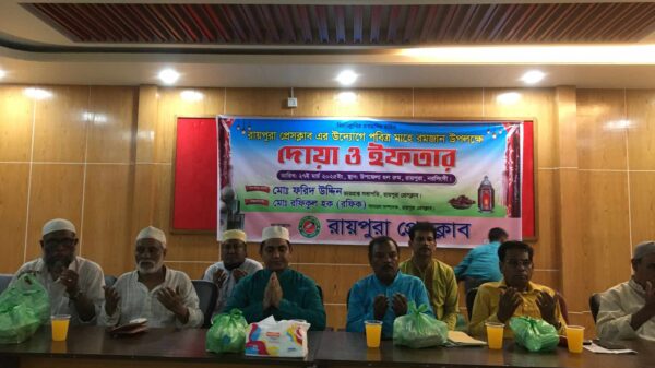 রায়পুরা প্রেসক্লাবের উদ্যোগে আলোচনা সভা, দোয়া ও ইফতার মাহফিল অনুষ্ঠিত