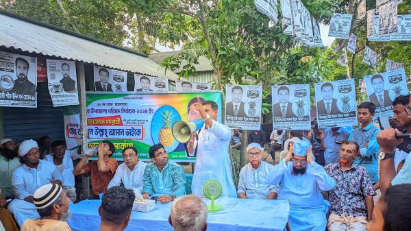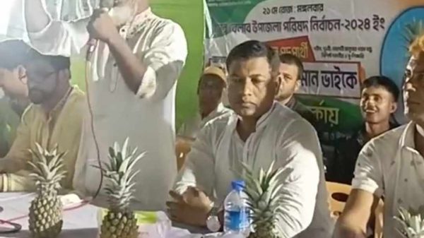 বেলাব উপজেলা পরিষদ নির্বাচনে আনারস প্রতীকের প্রার্থীর উঠান বৈঠক