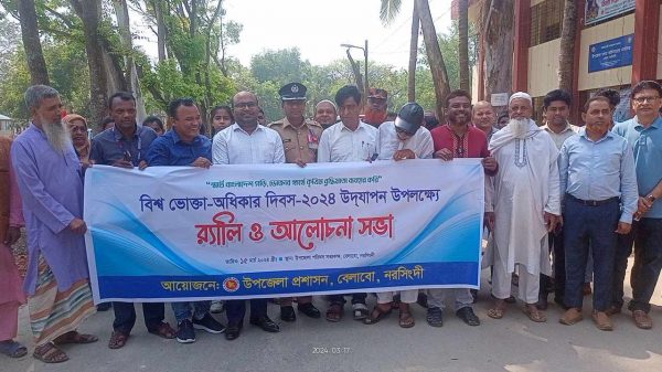 মোঃ বাদল মিয়া, বেলাব (নরসিংদী) প্রতিনিধি: স্মার্ট বাংলাদেশ গড়ি, ভোক্তার স্বার্থে কৃত্রিম বুদ্ধিমত্তা ব্যবহার করি’ এ প্রতিপাদ্যে নরসিংদীর বেলাবতে বিশ্ব ভোক্তা অধিকার দিবস উদযাপন উপলক্ষে এক বর্ণাঢ্য শোভাযাত্রা ও
