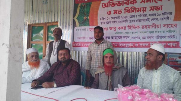 মোঃ বাদল মিয়া,(বেলাব – নরসিংদী) প্রতিনিধি: নরসিংদীর বেলাব উপজেলার শামছুল হুদা রহমানীয়া মাহমুদীয়া দ্বীনিয়া মাদরাসার অভিভাবক সমাবেশ ও মতবিনিময় সভা অনুষ্ঠিত হয়েছে। শনিবার (১০ ফেব্রুয়ারি) সকাল ১০টায় উপজেলার মরিচা